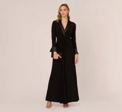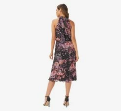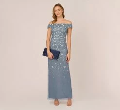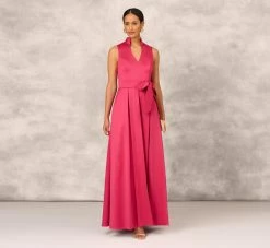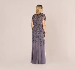 An opulent metallic floral embroidered pattern blooms all over the mesh fabric of our striking column gown. Finished with a satin ribbon tie belt to accentuate your waist. We love the delicate sheer illusion yoke and cap sleeves. Back zip closure. Calling all wedding guests and black-tie gala attendees, we love this for you.