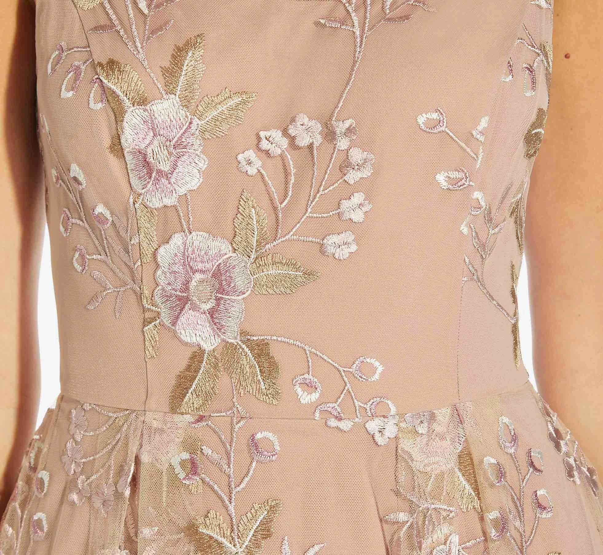 Adrianna Papell Floral Embroidered Flared Dress In Blush Multi