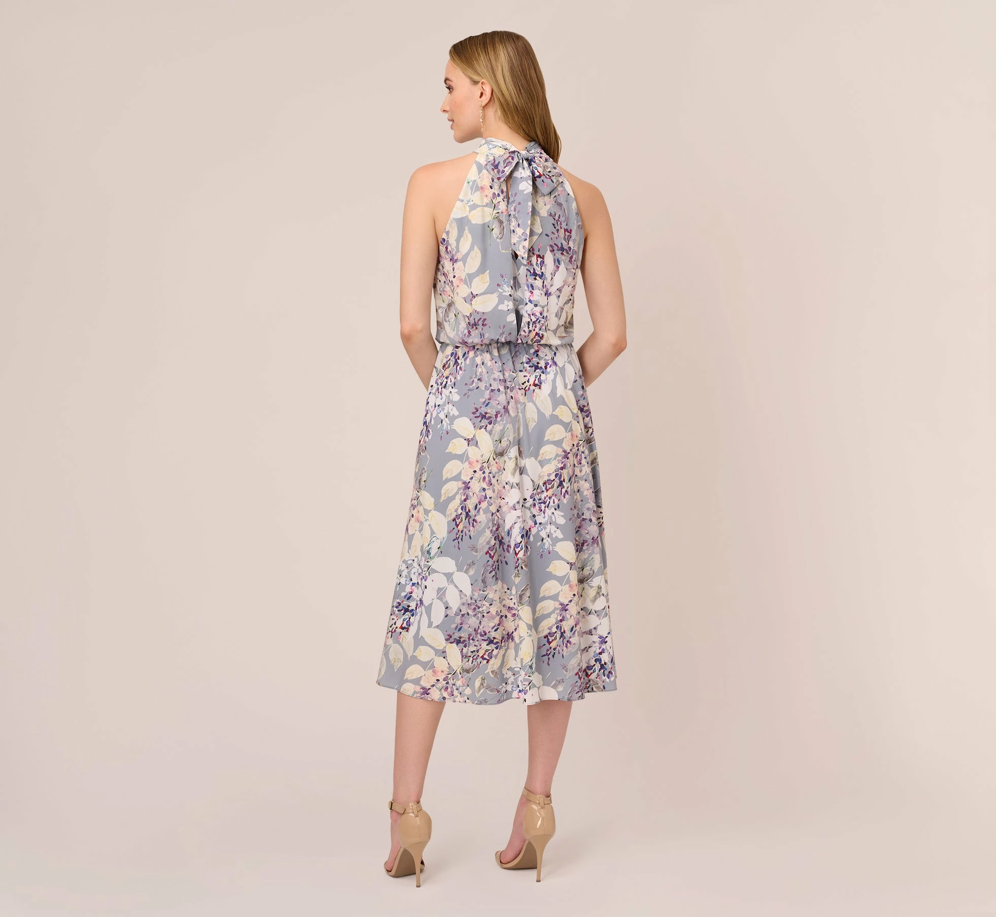 Adrianna Papell Floral Mock Neck Midi Dress In Dusty Blue Multi