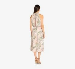 Feminine and fun, our midi halter dress is crafted of a luxe woven chiffon and gets updated in this season’s gorgeous floral print. This versatile dress is designed in a flattering fit-and-flare silhouette, made to hug your bodice and hips and then gently flares out at the hem for added fullness. A dress that not only looks good on, but feels great too.