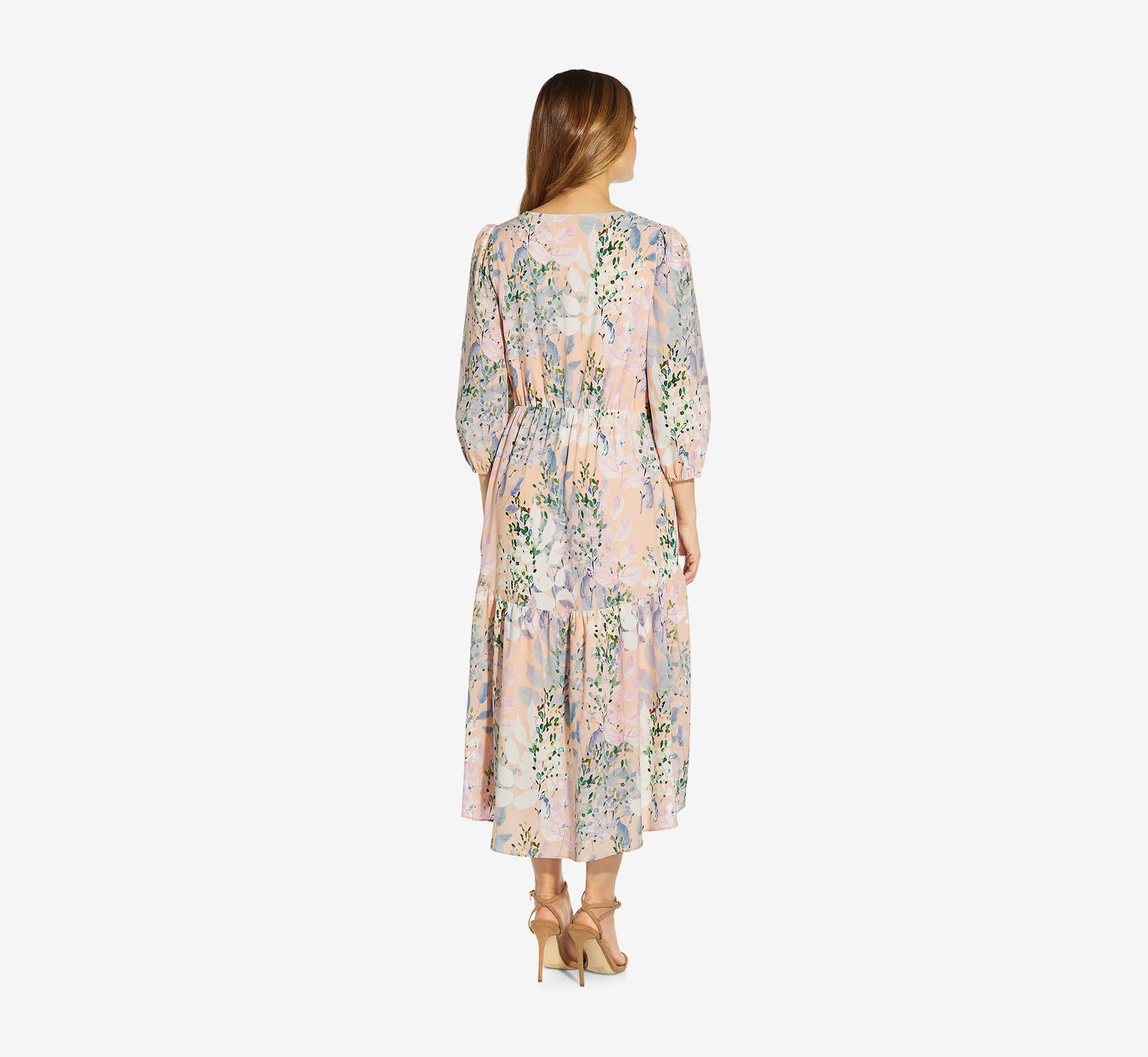 Delicate and light as air: obsessing over this woven stretch chiffon dress, especially the romantic floral print. Also loving the flattering v-neckline, three-quarter sleeves and high/low hem. Elastic waist and cuffs for a figure-flattering fit. Wear to brunch, bridal showers and vacation.