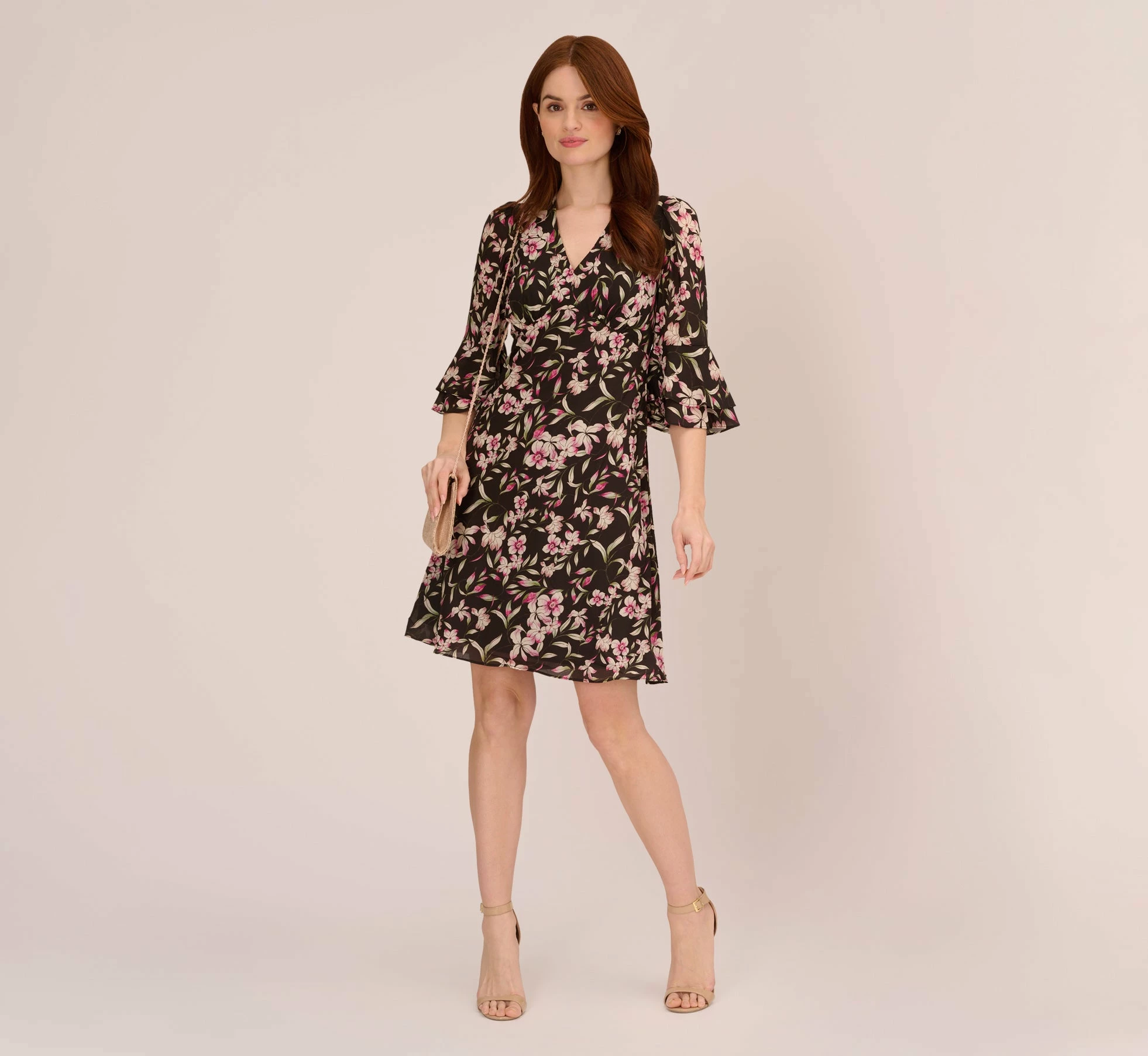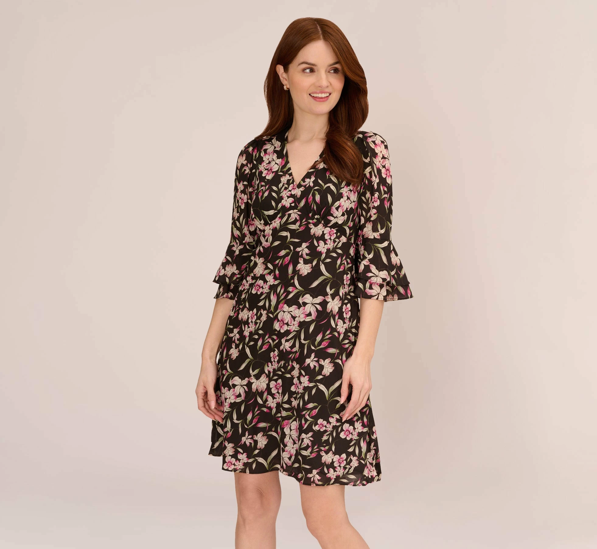 Timeless and trending: our romantic floral print chiffon dress is designed with an empire waist that floats from day to night. Details we love: the flattering v-neckline and playful elbow sleeves with bell cuffs.