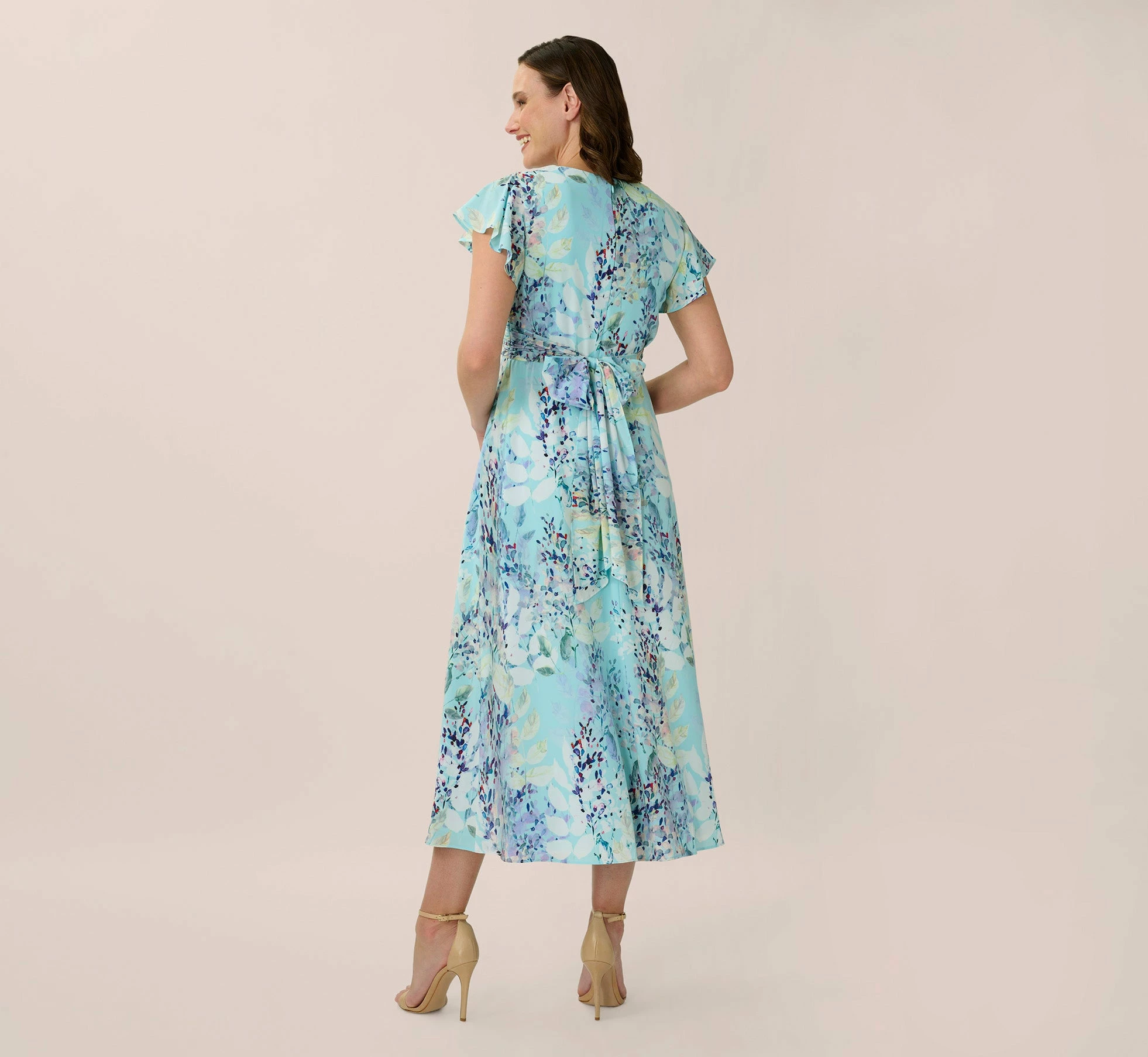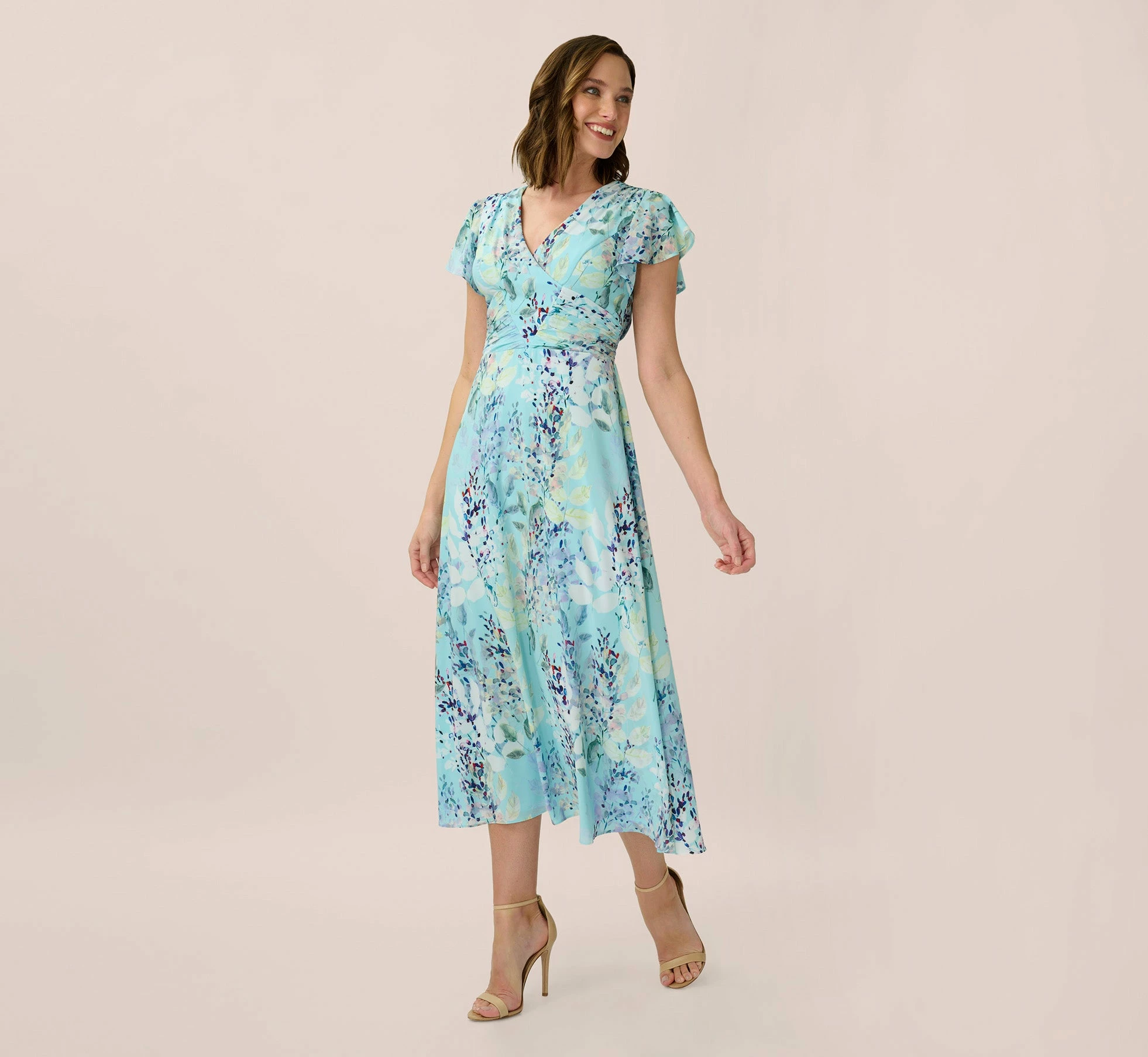 Adrianna Papell Floral-Print Fit-And-Flare Midi-Length Chiffon Dress In Light Blue Multi