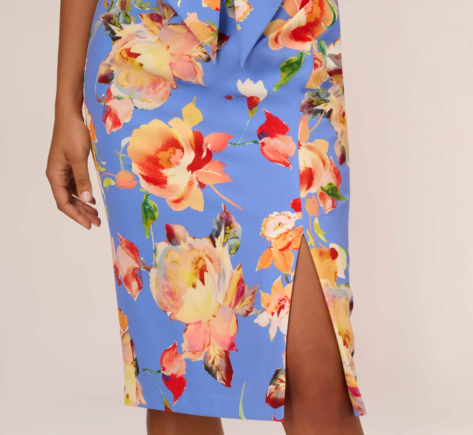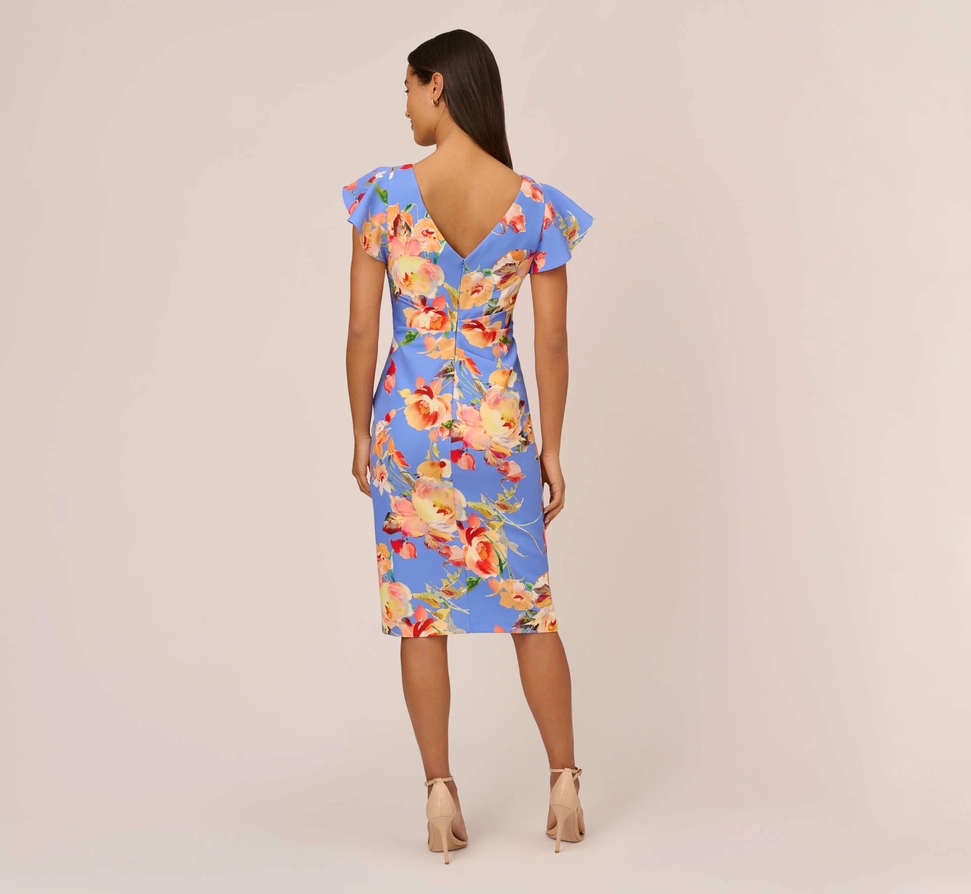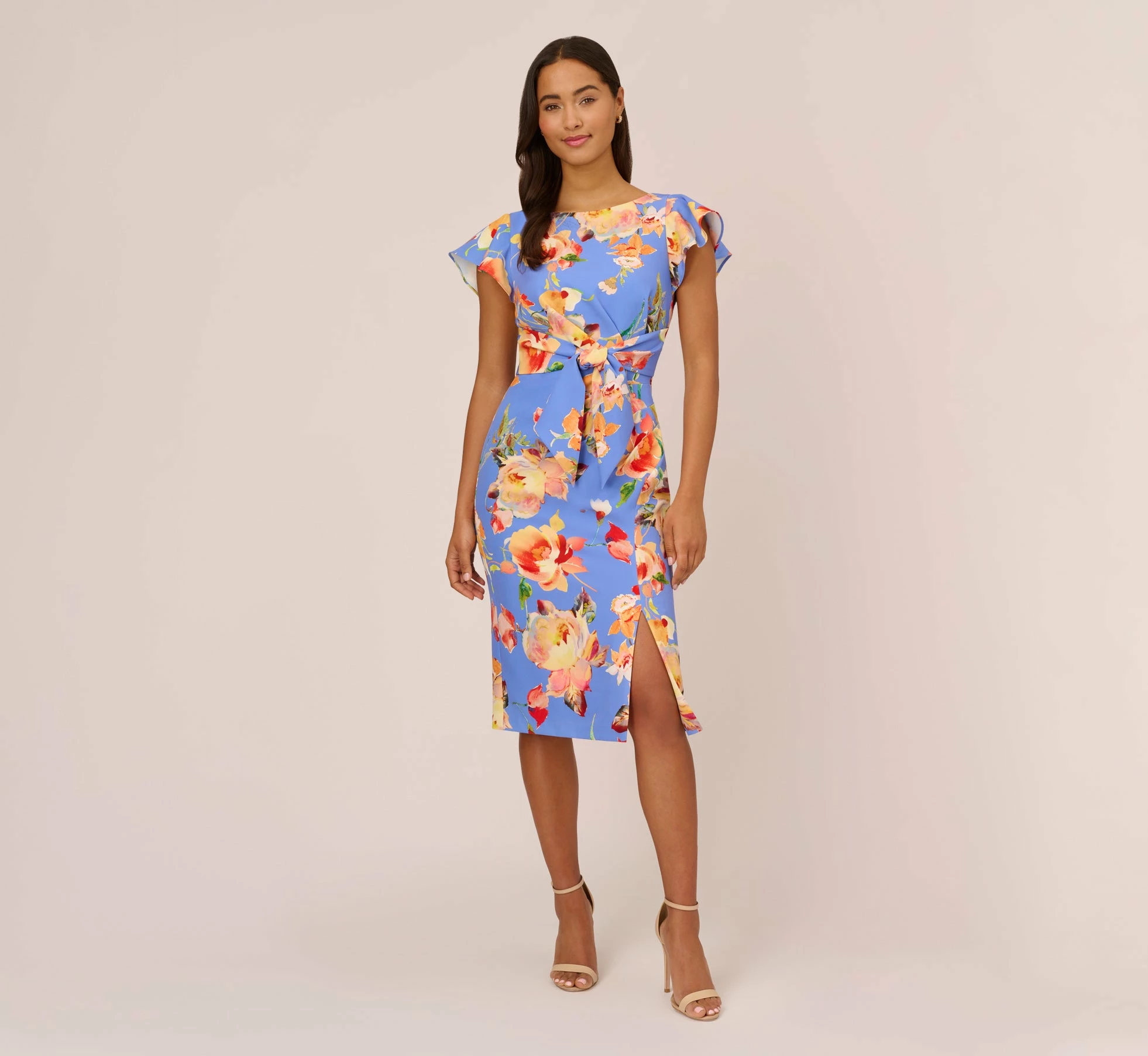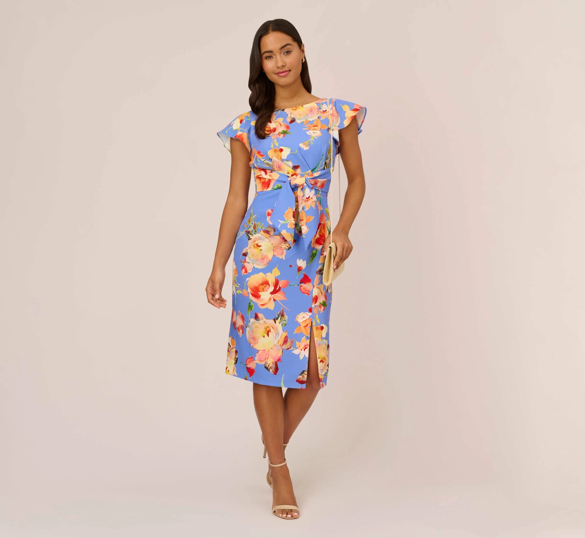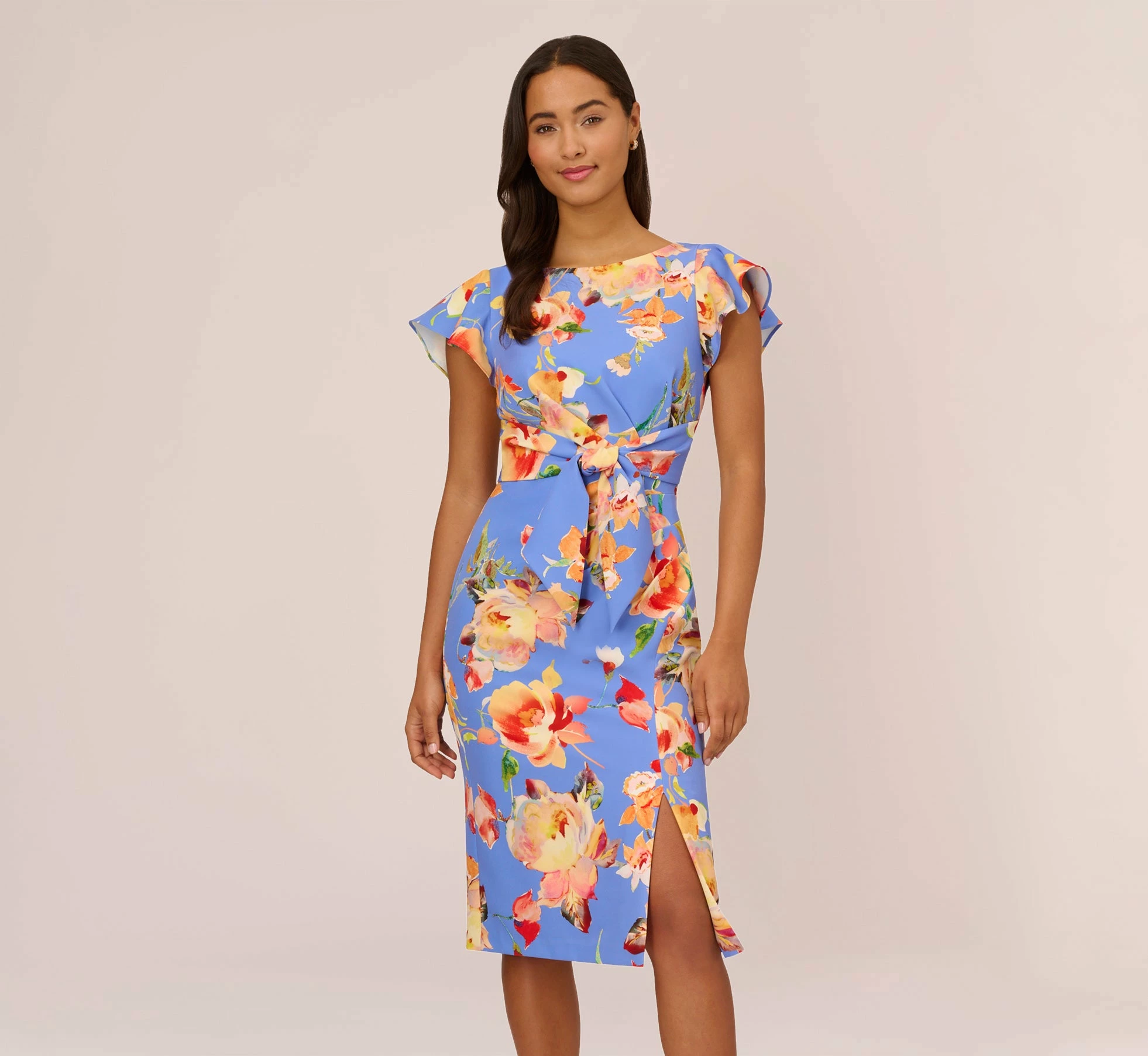 Wherever you go in this sheath dress, you’ll blossom. Featuring a boat neckline, flutter sleeves, and draped details throughout, this floral dress is a dreamy look. Crafted from stretch twill fabric that is oh-so comfortable and adorned in painterly floral print, this dress is a perfect look for dayor date night. This midi-length dress will accentuate your figure fabulously thanks to a self-tie waistline. A v-back with a zipper closure completes the look.
