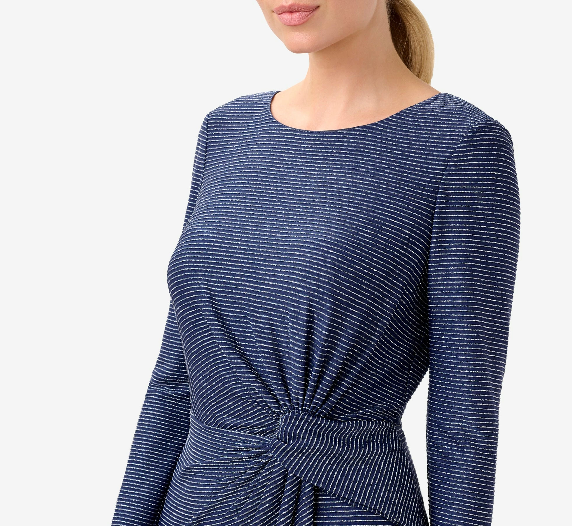 Timeless with a twist: our soft, effortless knit in metallic stripes, created in a flattering wrap silhouette—with a feminine, twisted drape at the front.