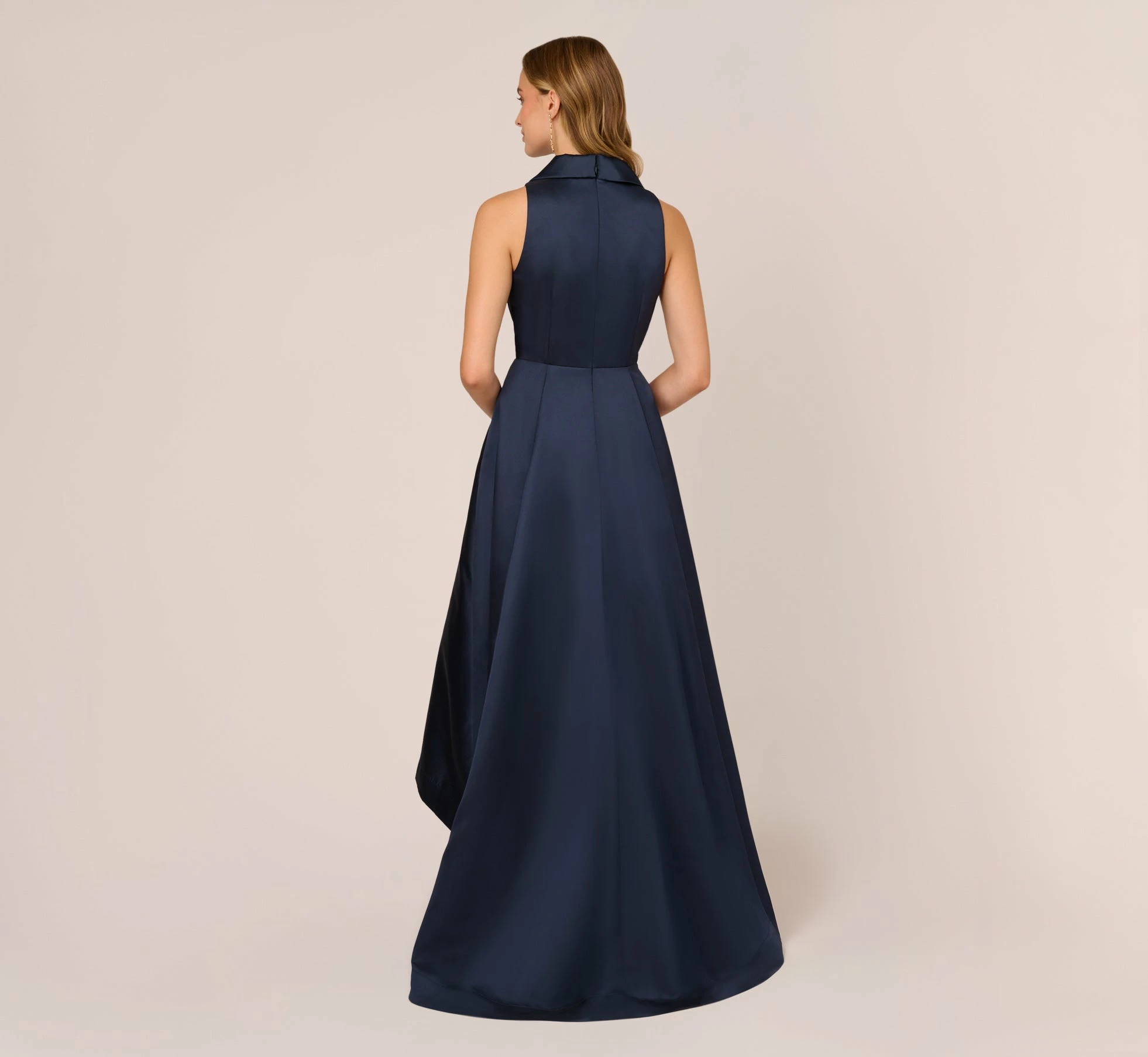 A new spin on the classic menswear-inspired style, this sleeveless tuxedo dress is crafted of a woven Mikado fabric with a shiny finish and voluminous drape. We’re obsessed with the showstopping high/low hem with horsehair trim. Details we love: the satin shawl collar and surplice neckline. We’ve added a touch of stretch for a comfortable fit. Sleek back zip closure.