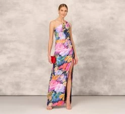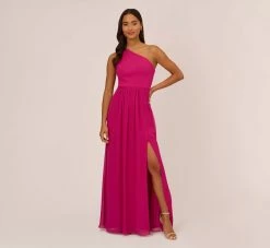 Lightweight, soft and fits like a dream, our woven chiffon floor-sweeping gown features a one-shoulder asymmetric neckline. Details: Pretty pleats at the waist for added dimension and movement. Bridesmaids, party-goers and anytime you have a special occasion, you’re going to look and feel great in this.