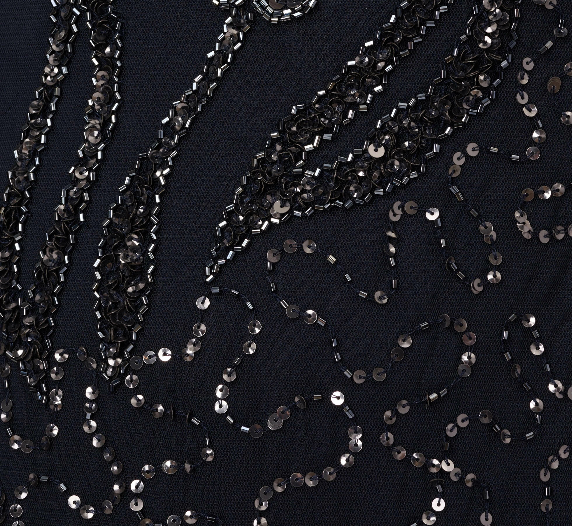 Elegant and irresistibly glamorous, this beaded evening dress is a stellar option for your next special night. This beautiful evening gown features a boat neckline, sheer illusion detailing at the neck and back, and an exquisite beaded bodice. Elegant sheer long sleeves add a sophisticated touch to this formal dress. Stunning sequins in a floral pattern adorn this beaded gown, which also includes a mermaid skirt with a slim sweep. Sleek back zip closure. Pair it with metallic heels and a matching clutch to let this jaw-dropping gown really shine.