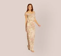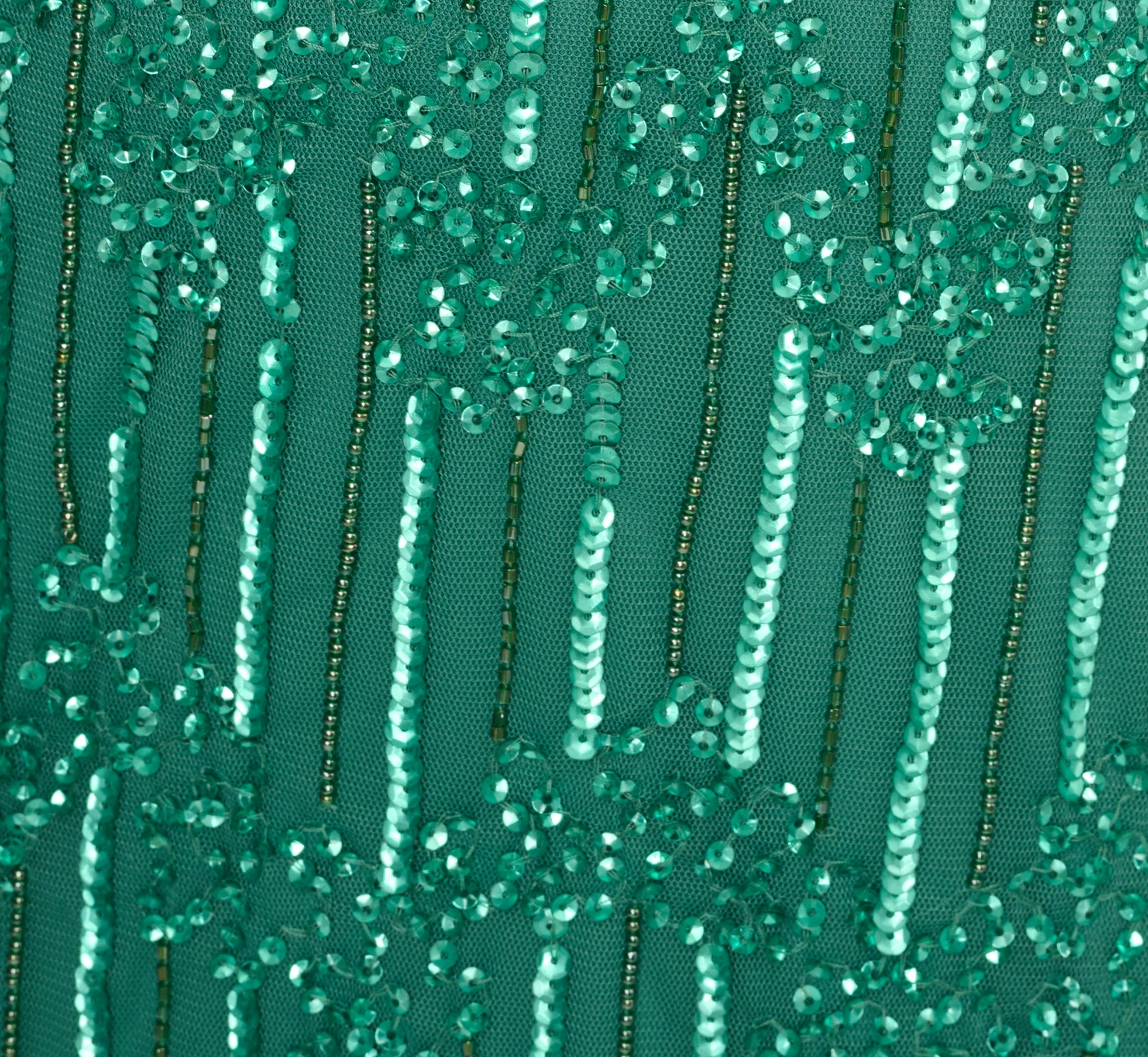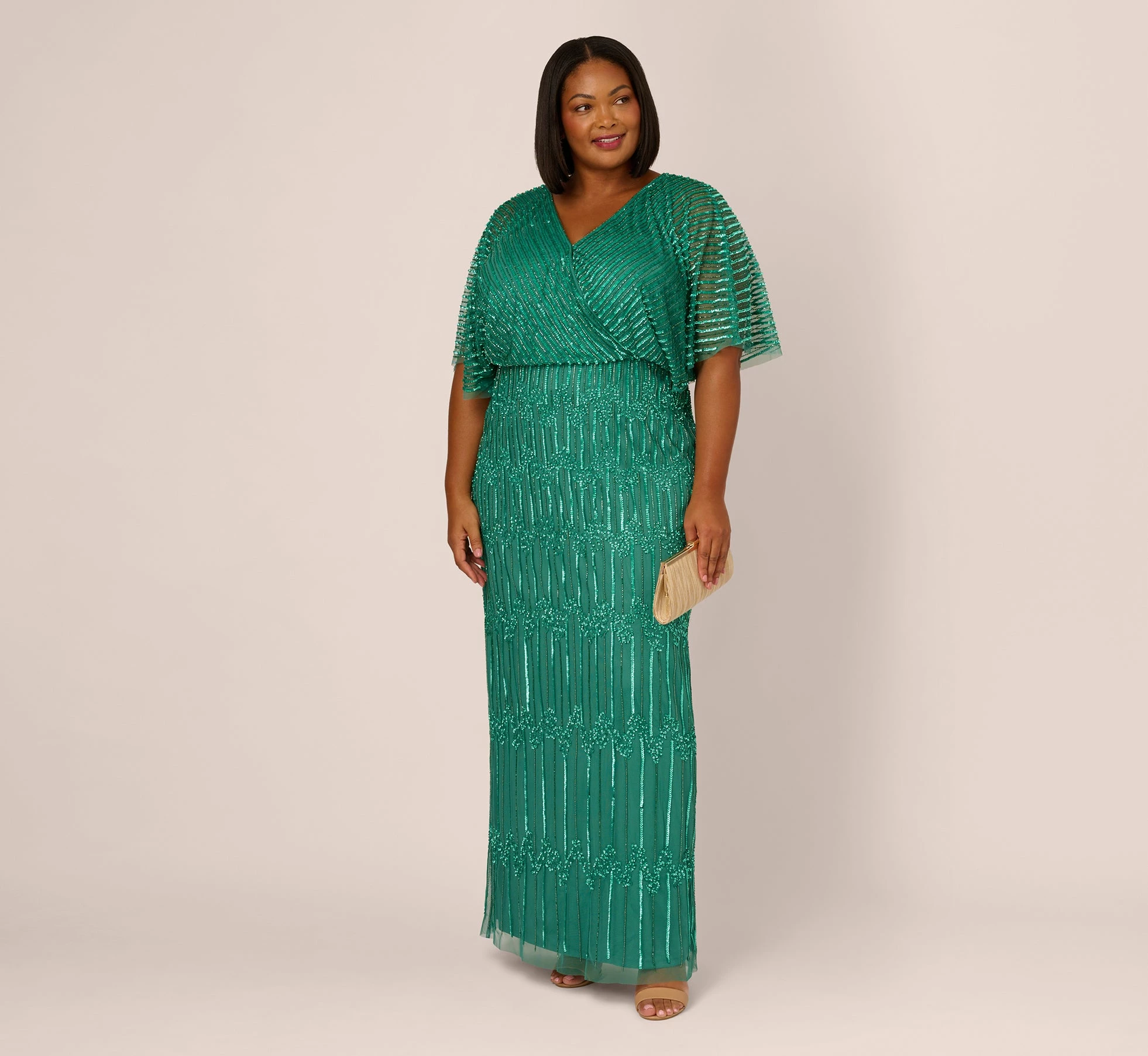Adrianna Papell Plus Size Hand-Beaded Illusion Long Column Blouson Gown In Jungle Green