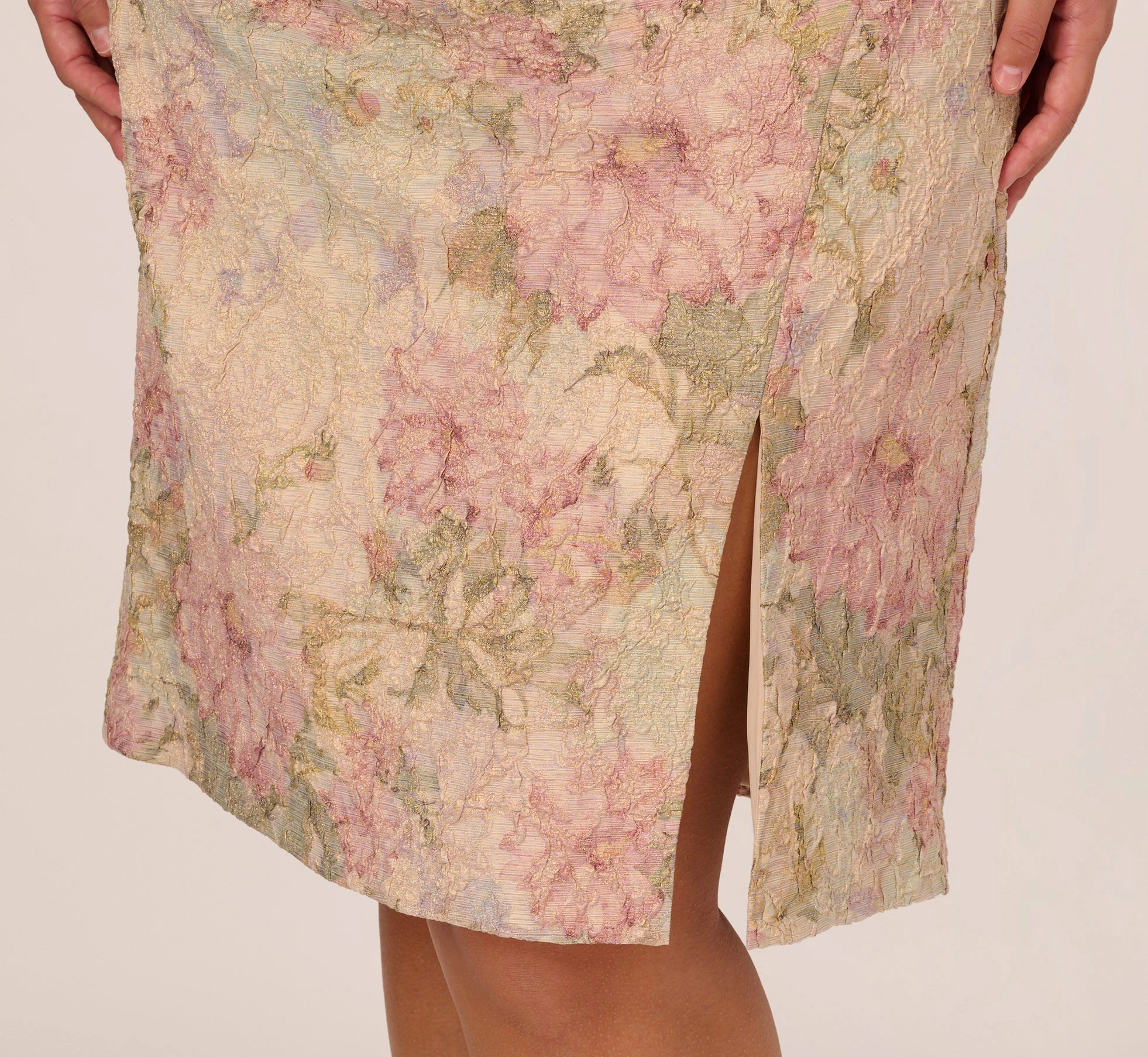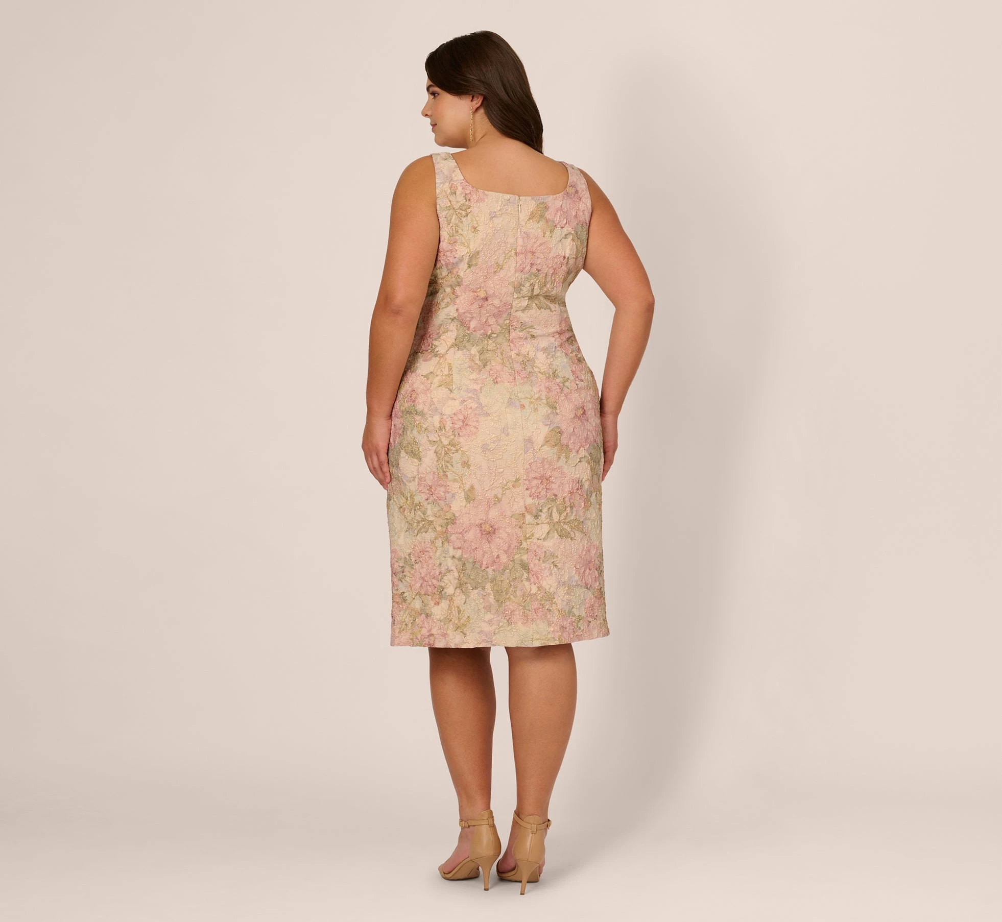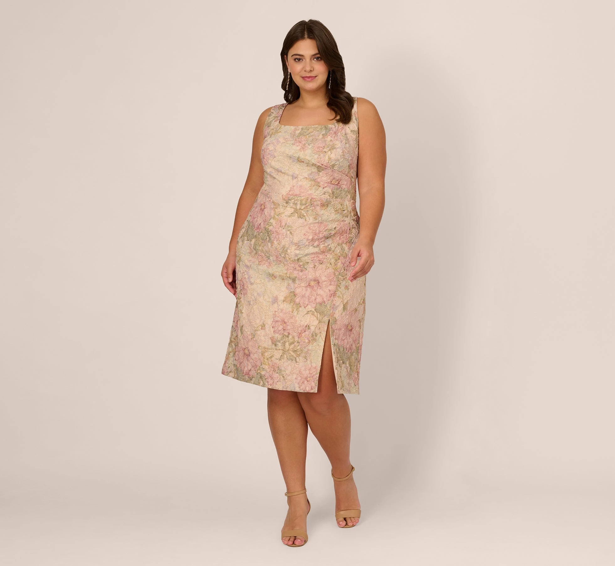 It’s easy to impress when you select this sheath dress for your next event. This floral dress features a tank-strap bodice with square neck and back, fitted silhouette, and a slit at the side of the skirt. Crafted from floral matelasse fabric, which shows off subtle shine, this dress is drapedthrough the body for a flattering fit. A zipper closure at the center back completes this sleeveless dress. Styled with nude or metallic heels, this modern yet timeless dress will elevate your plans.