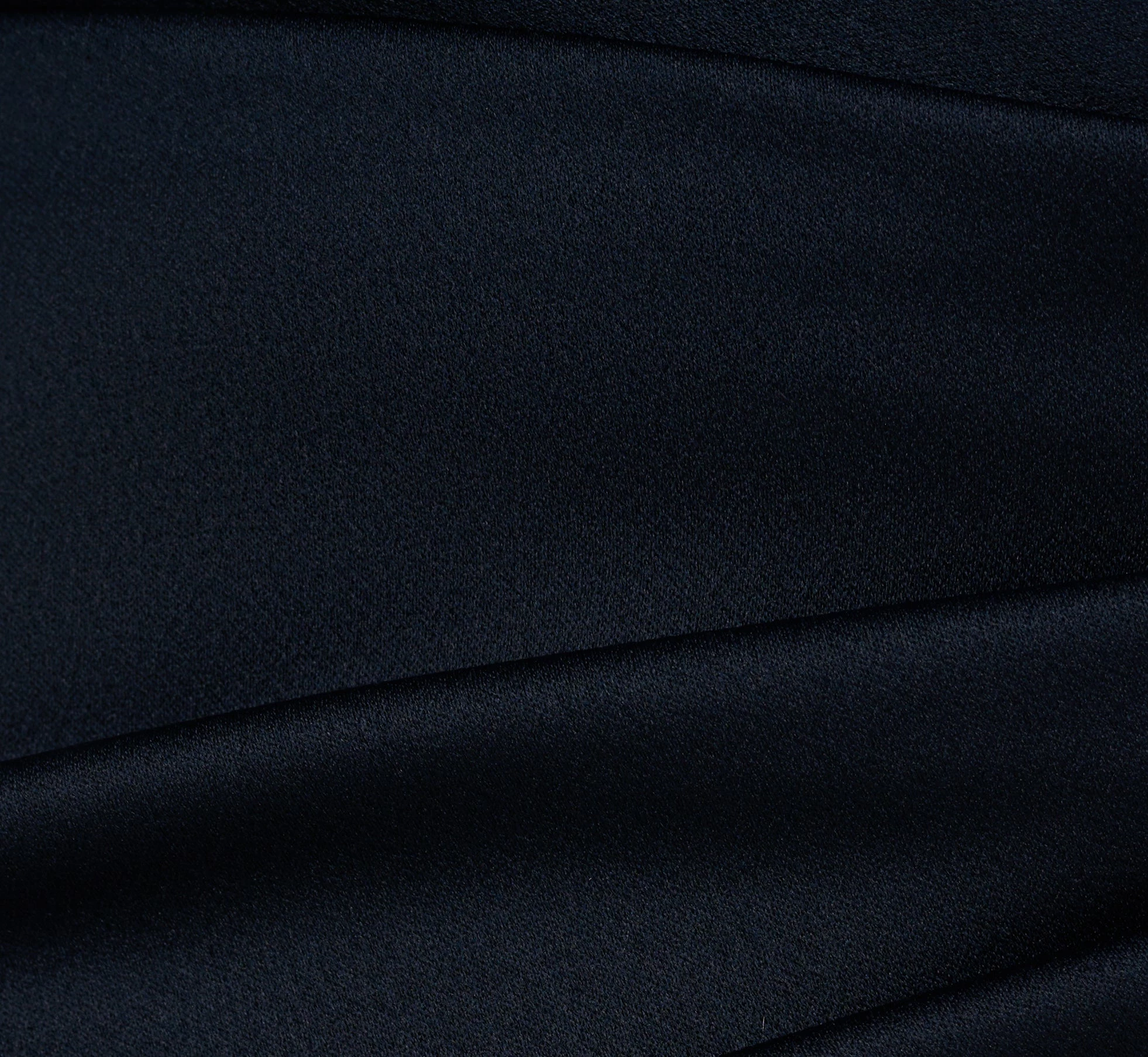 Contrasting details make this one-piece jumpsuit look like a chic two-piece set. This jumpsuit features a faux-wrap bodice with v-neckline, three-quarter sleeves, and a self-buckle side accent with a draped sash. Crafted from satin crepe at the top of the design, the bodice haselegant pin-tucked details. The wide-leg pants are designed from crepe fabric, which creates a point of difference from the shining top. A zipper closure at the center back completes this jumpsuit. Easily styled for dressy daytime events or formal occasions, this three-quarter sleevejumpsuit is a classic look.
