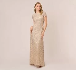 Adrianna Papell Scoop Back Sequin Gown In Champagne