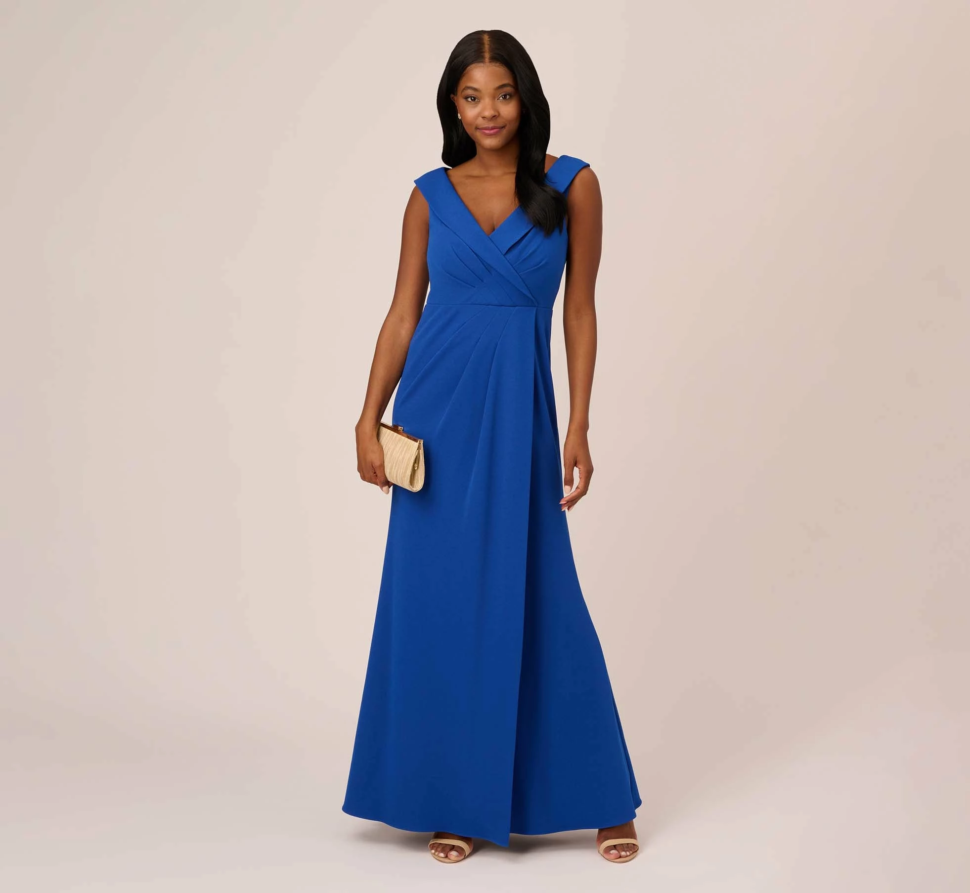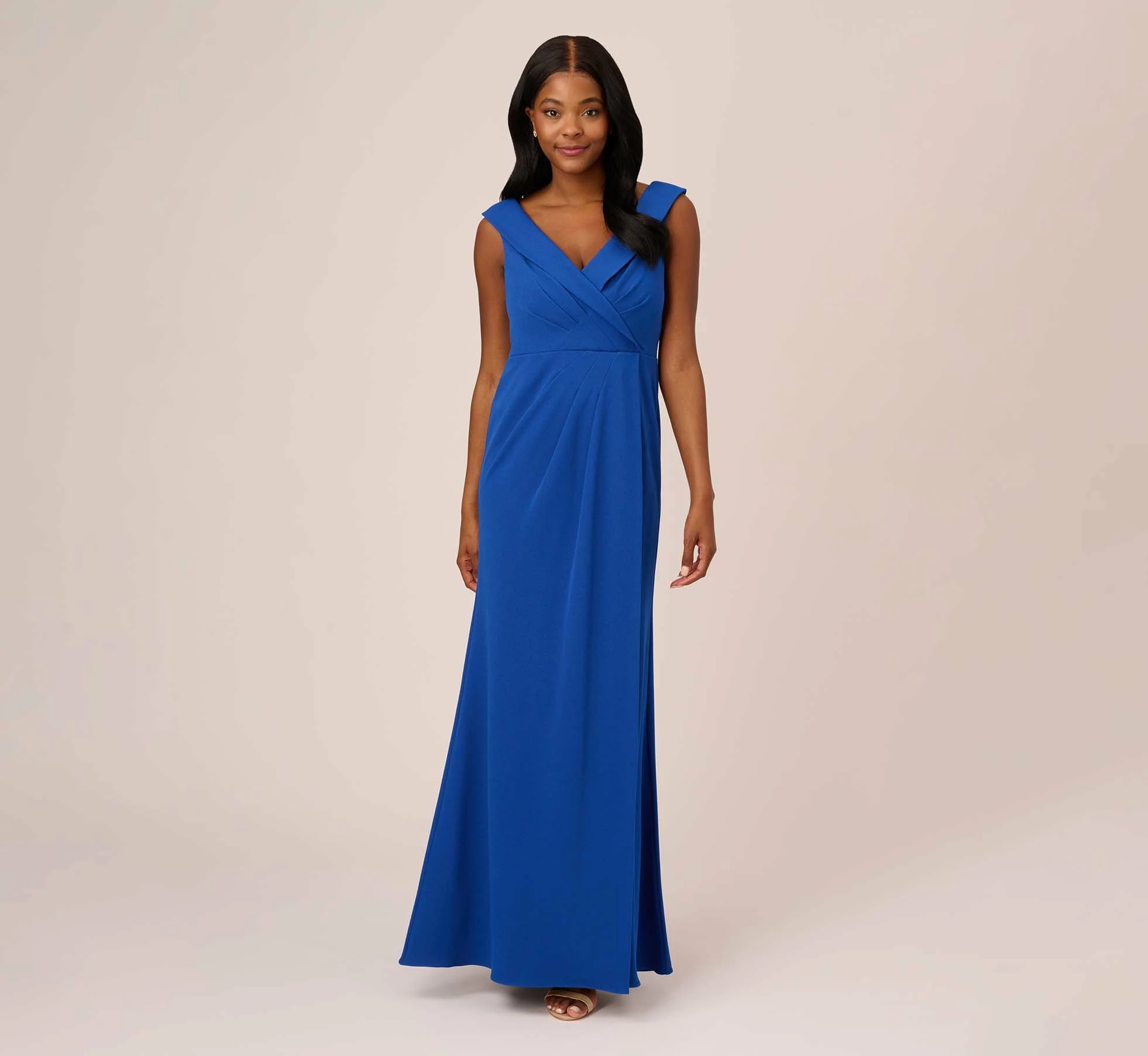Win over the crowd in our timeless gown fashioned from our easy-fitting stretch knit crepe and framed a self-shawl collar. The epitome of elegance, this full-length gown features a faux wrap bodice that tops the mermaid skirt with slit for a flirty leg reveal. Finished with pleated details for a flattering fit. An exceptional choice for elegant evenings while versatile enough to wear on repeat. Back zipper with hook and eye closure.