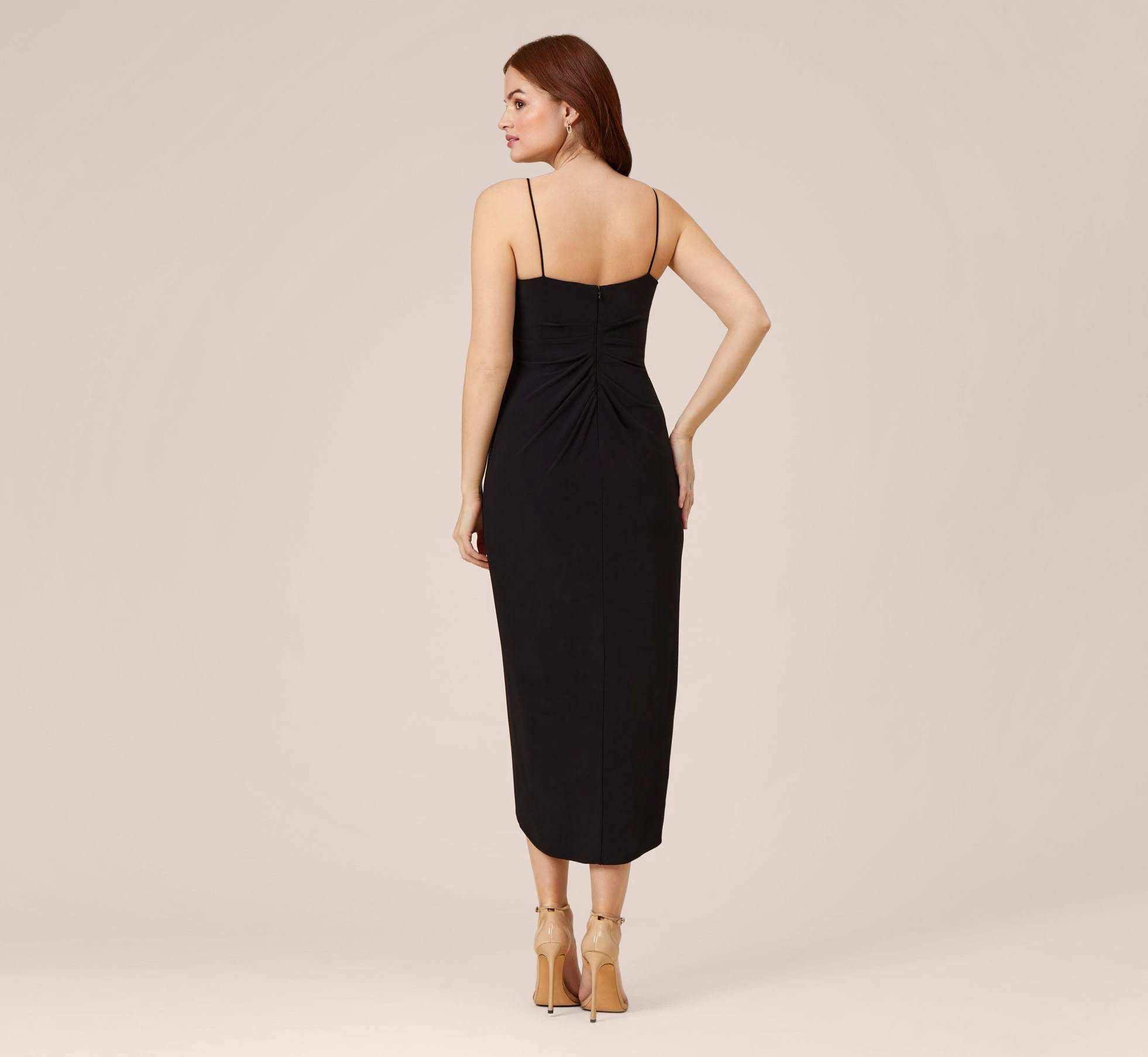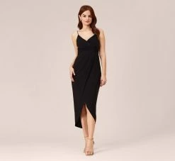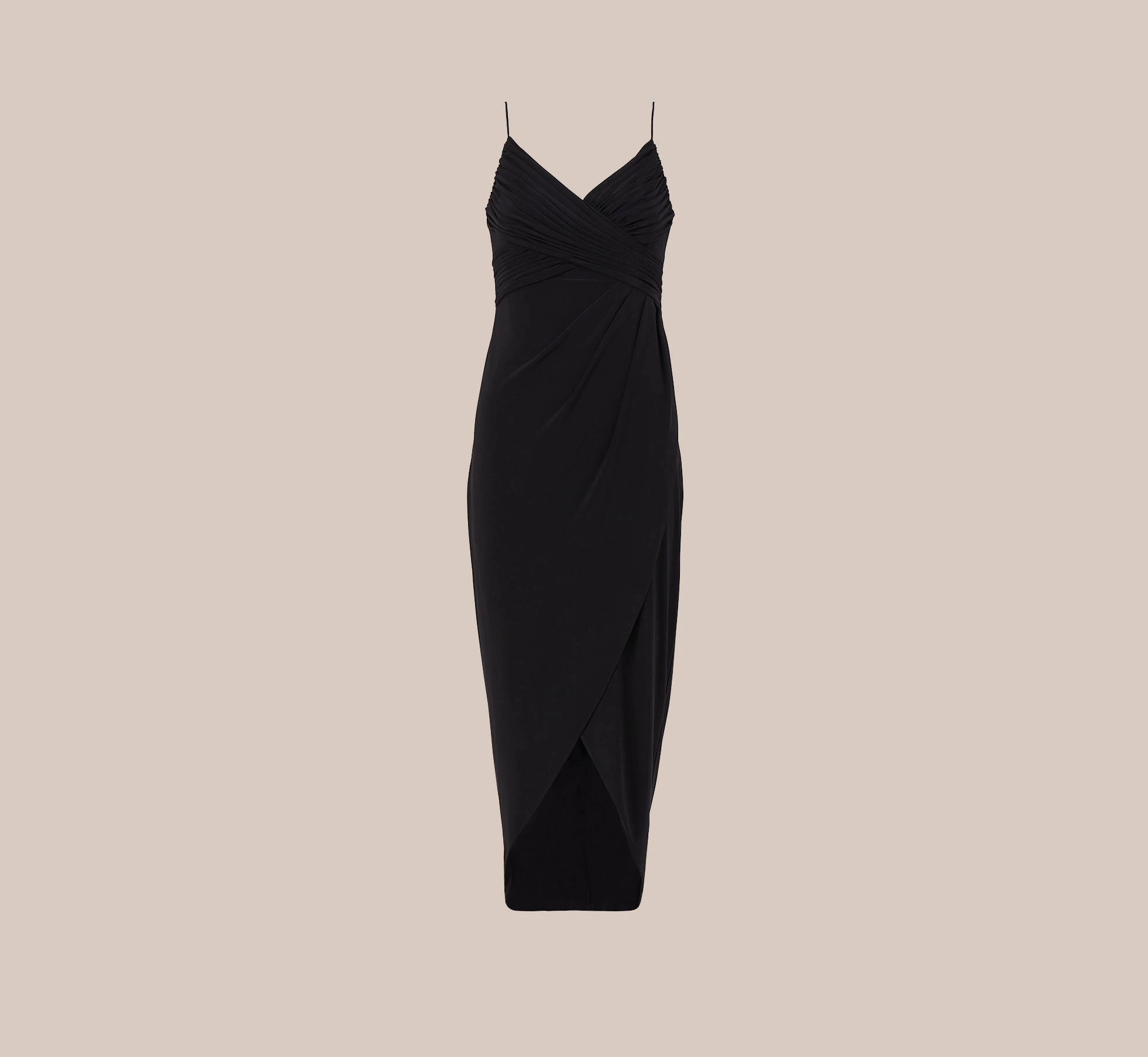 Classic and chic, this faux wrap midi dress is crafted from an easy-fitting and comfortable stretch jersey fabric that is guaranteed to stand the test of time. This modern, yet versatile style features delicate spaghetti strap that fall to a flattering surplice bodice with draped detailing. You’ll reach for this timeless style over and over again.