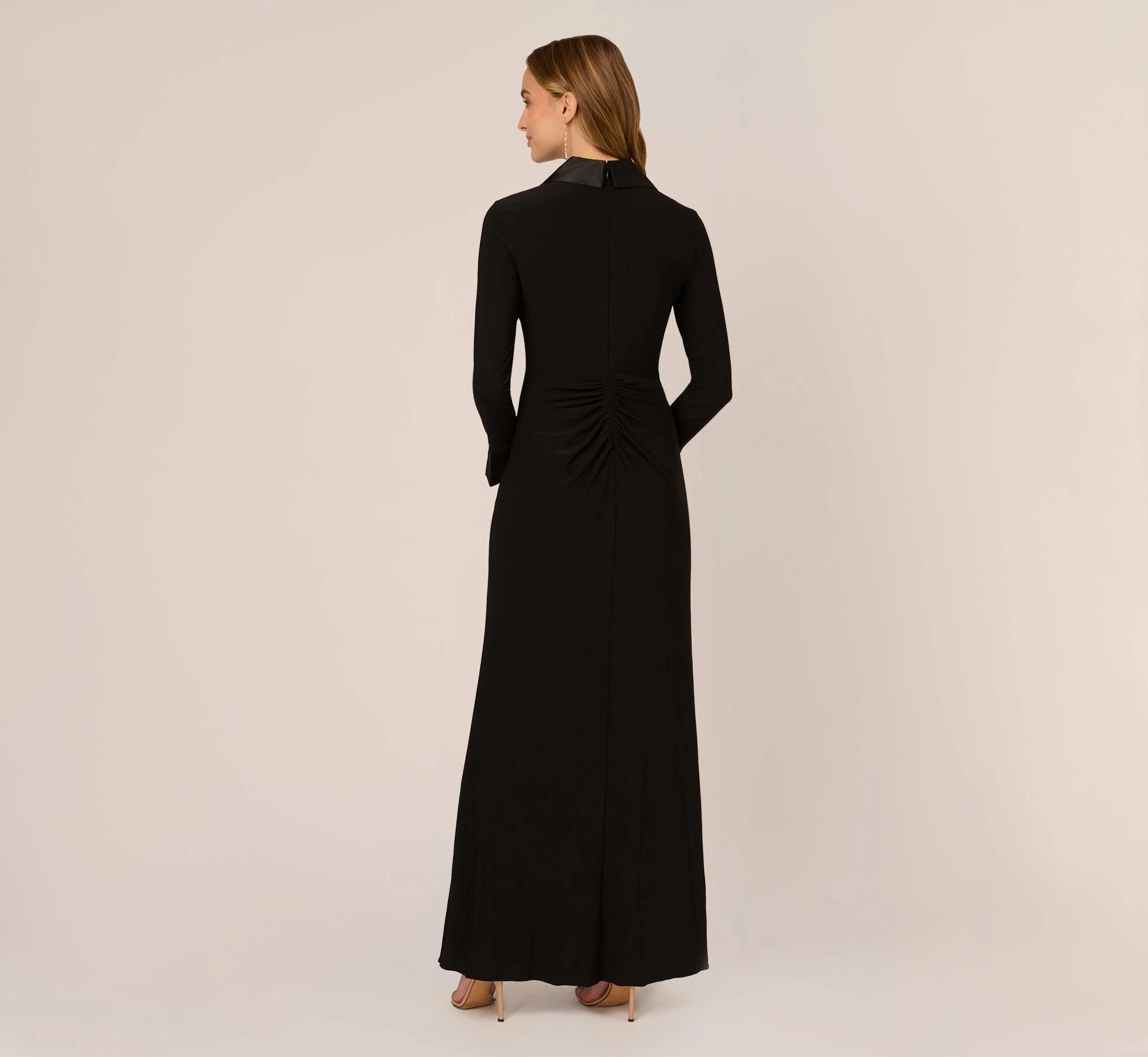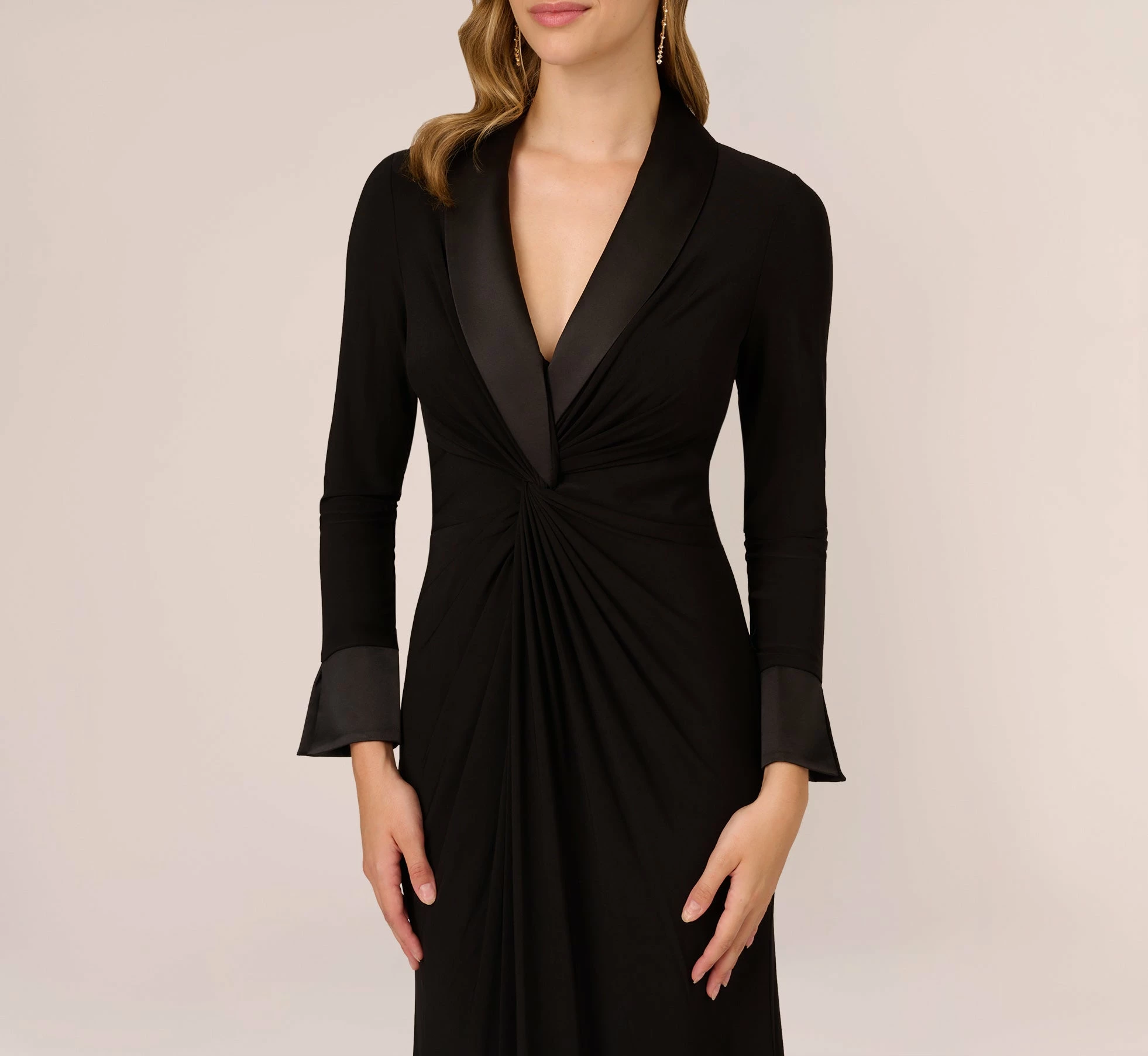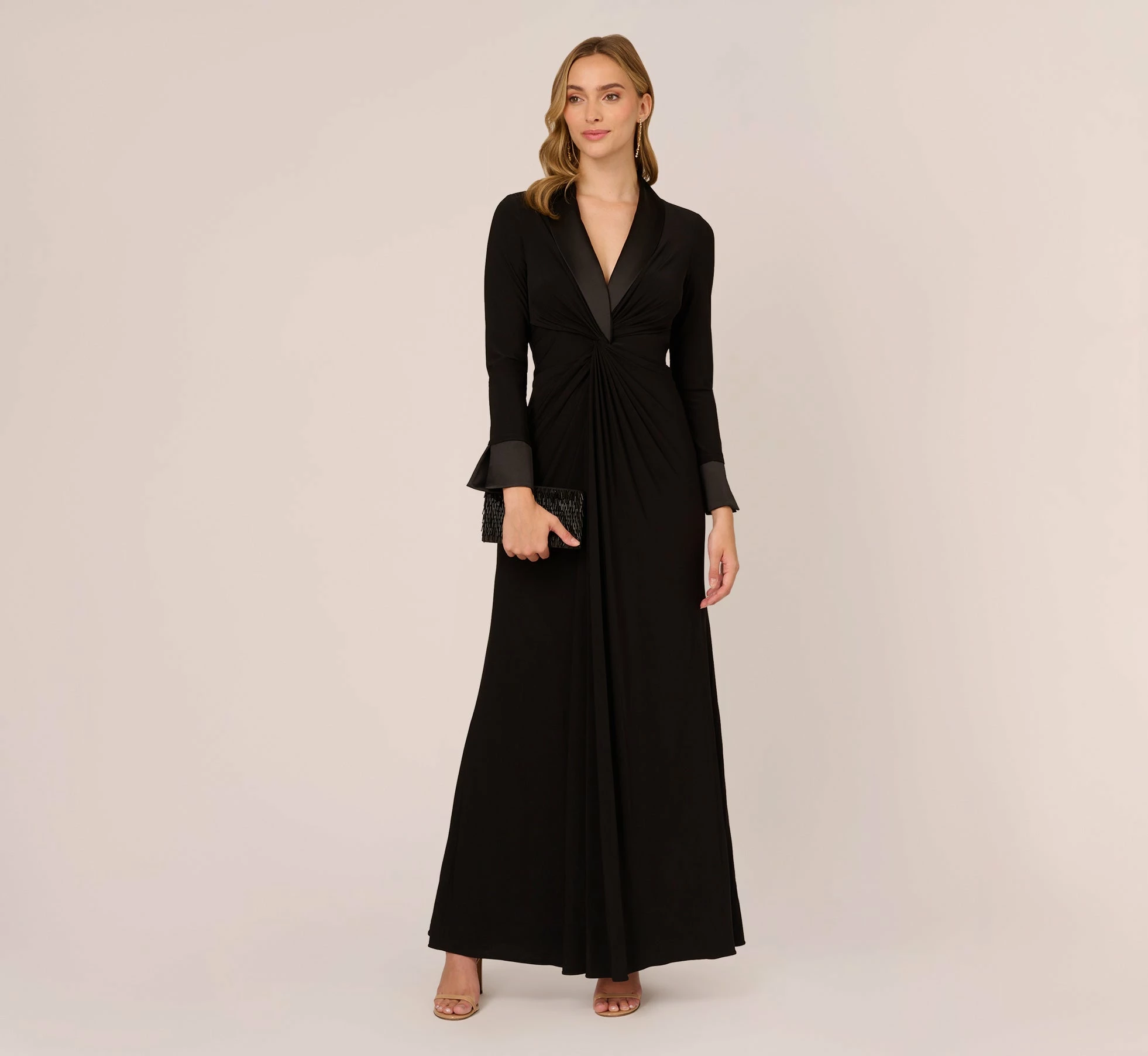 A modern, ultra-chic floor-length gown inspired by the iconic tuxedo dress. We designed ours with elegant long sleeves, in a soft silhouette that skims the figure beautifully. This is a wear-everywhere, wear-forever gown—a go-to for so many evening events.