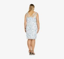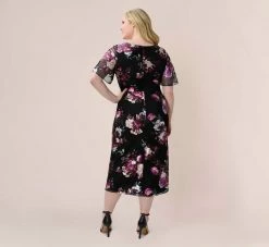Adrianna Papell Plus Size Foiled Floral-Print Mesh Midi-Length Cocktail Dress In Black Multi