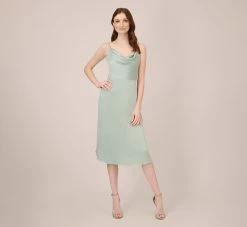 Adrianna Papell Satin Midi-Length Fit-And-Flare Cocktail Dress With Cowl Neck In Willow