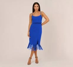 Crepe Popover Midi Dress With Fringe Trim In Royal Sapphire