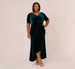 Adrianna Papell Plus Size Hand-Beaded Illusion Long Column Blouson Gown In Jungle Green