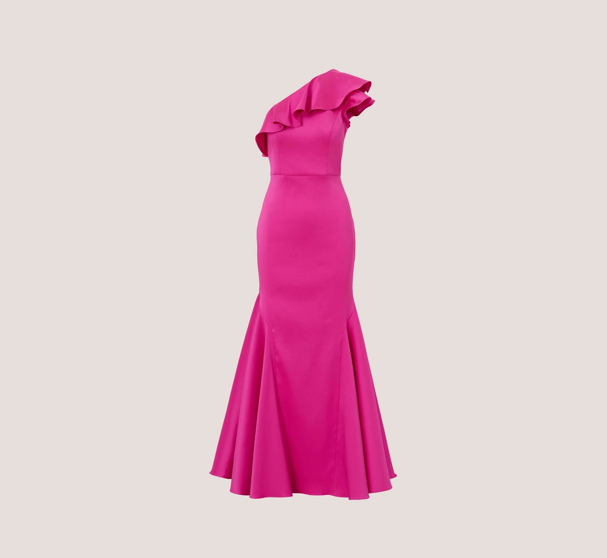 Simple details always make the biggest statement – and this mermaid gown proves it. This formal dress features a one shoulder neckline accented with decadent ruffles. Fitted throughout the body, the dress gives way to a dramatic mermaid flared skirt. Paired with neutral or contrasting accessories, this formal dress will steal the show at your next event.
