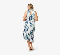 Adrianna Papell Plus Size Floral-Print Crepe Midi-Length Blouson Halter Dress In Ivory Multi
