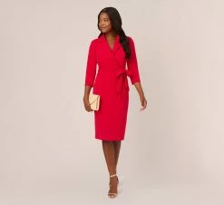 Adrianna Papell Satin Crepe Three Quarter Sleeve Jumpsuit With Buckle Waist In Dark Navy