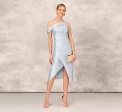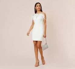 Off-The-Shoulder Crepe Cocktail Sheath Dress With Bows In Ivory