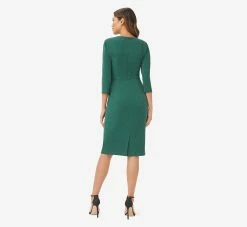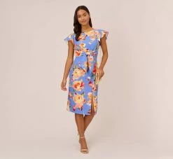 Adrianna Papell Embroidered Three Quarter Sleeve Short Sheath Dress With Bell Sleeves In Blue Multi