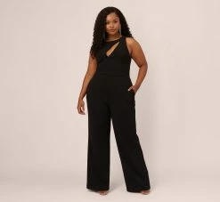 Plus Size Knit Crepe Wide Leg Jumpsuit With Cutout Accent In Black