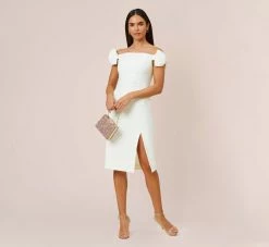 Off-The-Shoulder Crepe Cocktail Sheath Dress With Bows In Ivory
