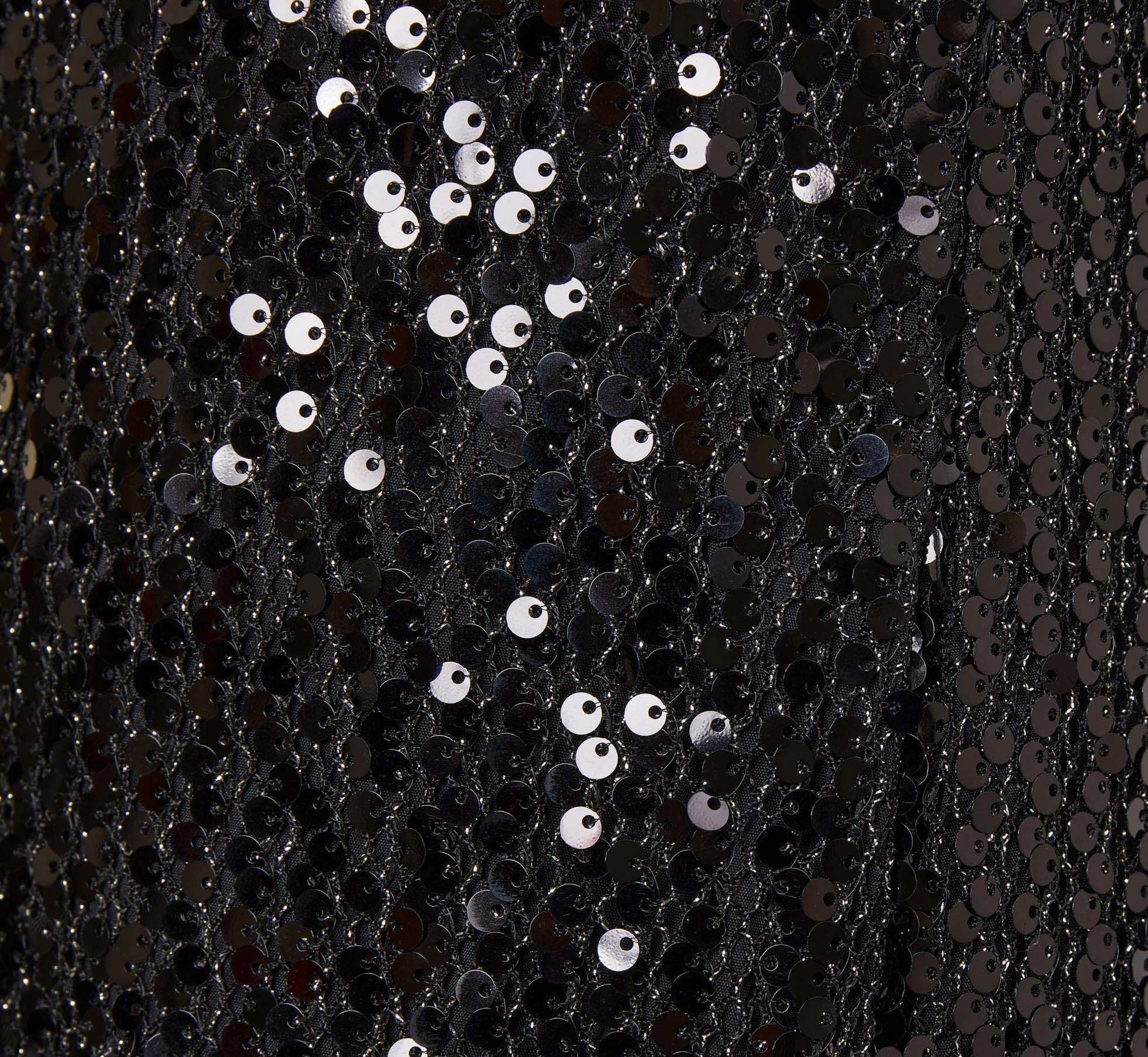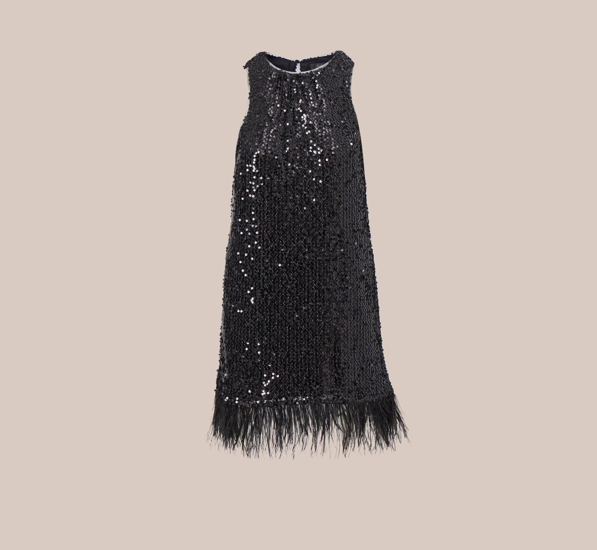 Sequined Trapeze Halter Dress With Feather Trim In Black